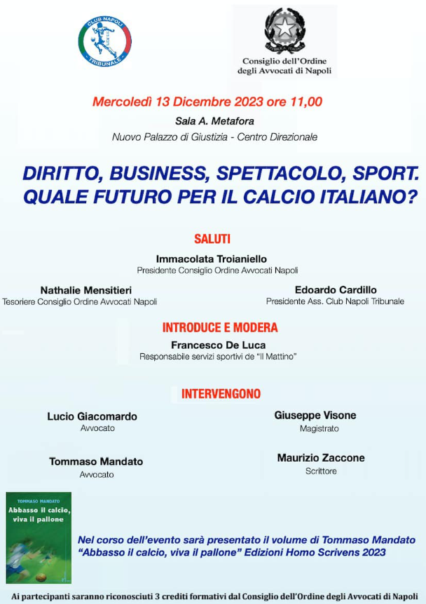 Mercoledì 13 dicembre 2023 ore 11.00 Nuovo Palazzo di Giustizia Centro Direzionale