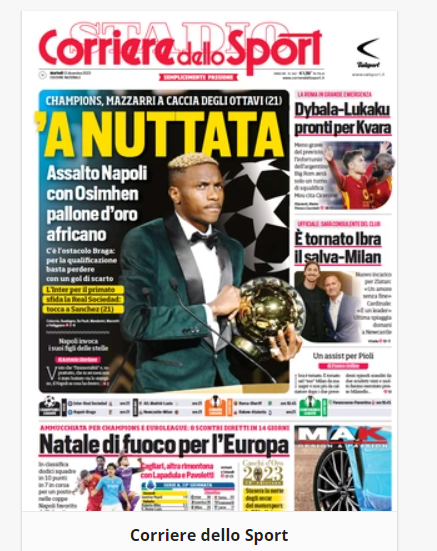 NewsCalcioRassegna Stampa RASSEGNA STAMPA”. Le prime pagine sportive del 12 dicembre By Giuseppe Sacco il Dic 12, 2023 - 07:00:31 0 Condividi In primo piano sui principali quotidiani sportivi nazionali Factory della Comunicazione CalcioNapoliRassegnaStampa 0 Condividi FacebookTwitterGoogle+ReddItWhatsAppPinterestE-mail