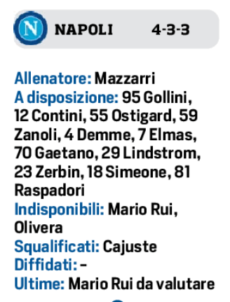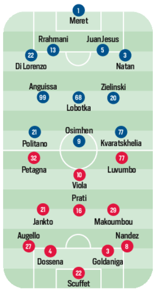 Sarà ancora una volta 4-3-3, il modulo che Mazzarri ha blindato pubblicamente, con Osimhen al centro dell’attacco, il riferimento offensivo a cui aggrapparsi per risalire in campionato. Con lui, in avanti, ci saranno Politano e Kvaratskhelia, che cerca la gioia perduta e una ritrovata serenità. Anche Osi vuole tornare al gol in Serie A dopo essersi sbloccato in Champions: l’ultimo l’8 ottobre contro la Fiorentina. A centrocampo il tris classico, Anguissa-Lobotka-Zielinski; in difesa davanti a Meret ci saranno Di Lorenzo, Rrahmani, Juan Jesus e, come detto, Natan, la sorpresa di coppa. Ma ora è tempo di conferme.