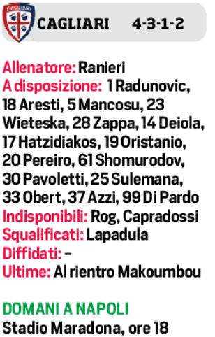 (Formazioni) Napoli e Cagliari messe in campo dal Corriere dello Sport