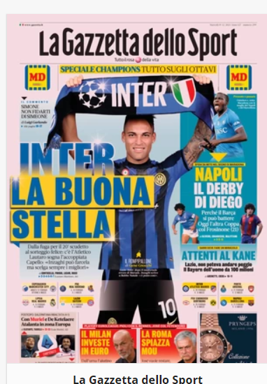 NewsCalcioIn Evidenza “RASSEGNA STAMPA SPORTIVA”. Le prime pagine del 19 dicembre By Giuseppe Sacco il Dic 19, 2023 - 07:00:56 0 Condividi In primo piano sui principali quotidiani sportivi nazionali Factory della Comunicazione CalcioNapoliRassegnarassegna stampa 0 Condividi FacebookTwitterGoogle+ReddItWhatsAppPinterestE-mail