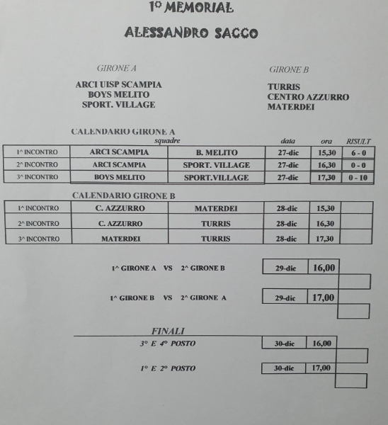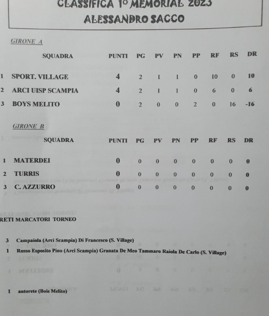 1° Memorial Alessandro Sacco – I risultati dei primi incontri tra Arci Scampia, Sporting Village e Boys Melito