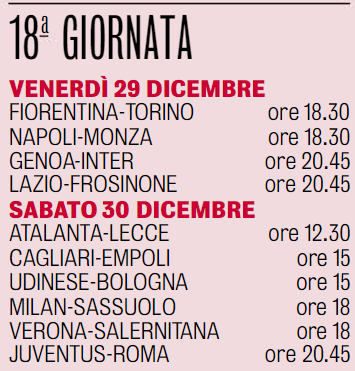 FIORENTINA – TORINO     Venerdì 29/12 h. 18.30
