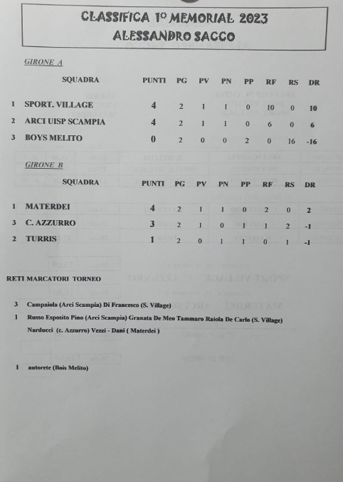 “1° Memorial Alessandro Sacco”. La seconda giornata del torneo all’Arci Scampia. I risultati e la classifica