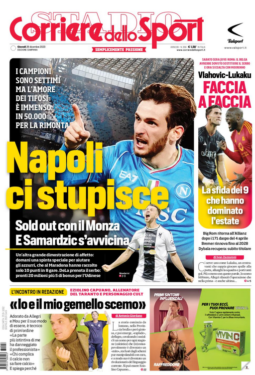 NewsCalcioIn Evidenza “PRIME PAGINE SPORTIVE”. Rassegna stampa del 28 dicembre By Giuseppe Sacco il Dic 28, 2023 - 07:00:11 0 Condividi In primo piano sui principali quotidiani sportivi nazionali Factory della Comunicazione CalciCalcioNapoliRassegna 0 Condividi FacebookTwitterGoogle+ReddItWhatsAppPinterestE-mail