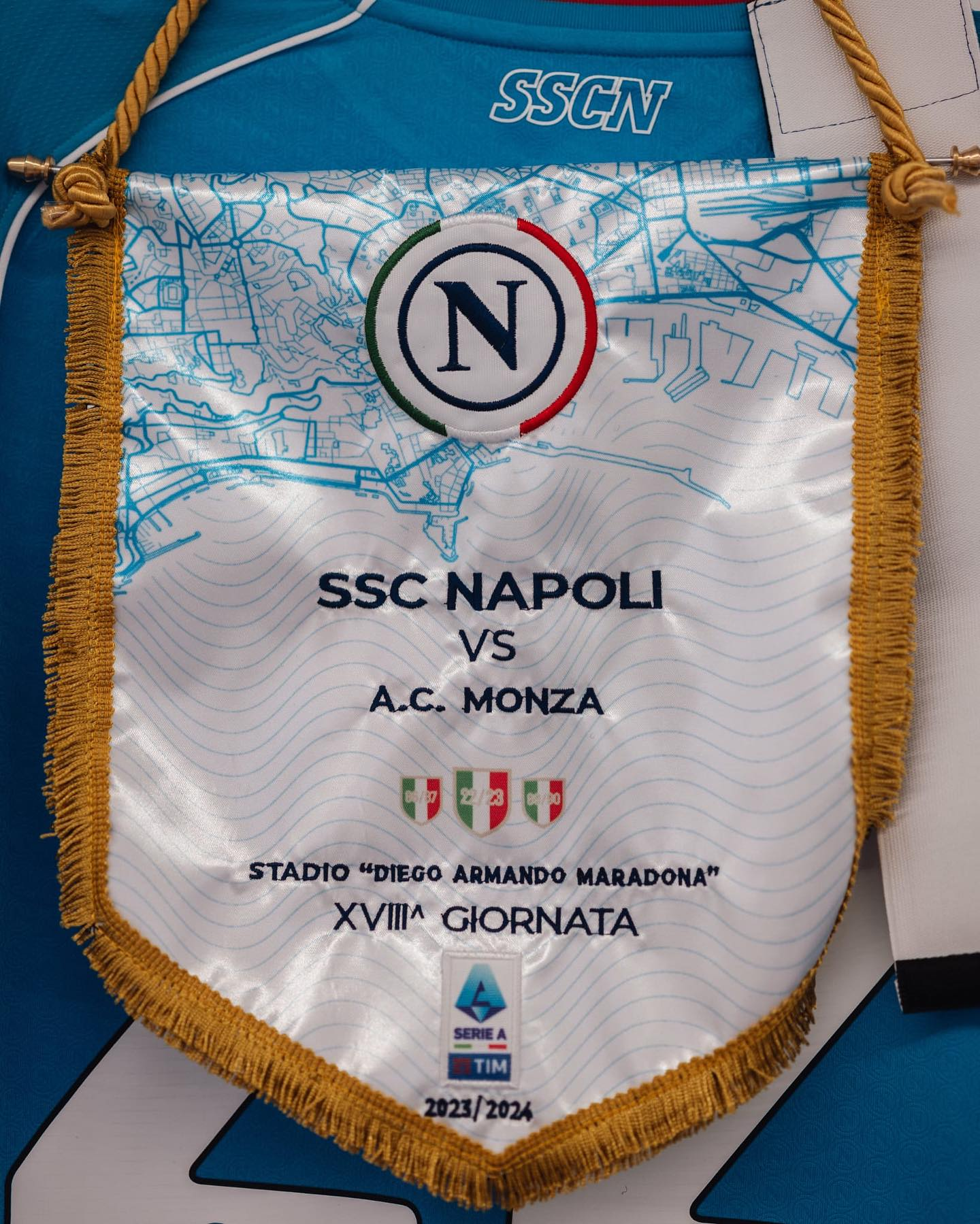 Divise: Il Napoli scende in campo con la divisa classica, maglia azzurra con il tricolore sul petto, calzoncino bianco, calzettoni azzurri, portiere in giallo ocra. Monza in completo nero con inserti bianco-rossi, portiere in completo rosso ed inserti bianchi
