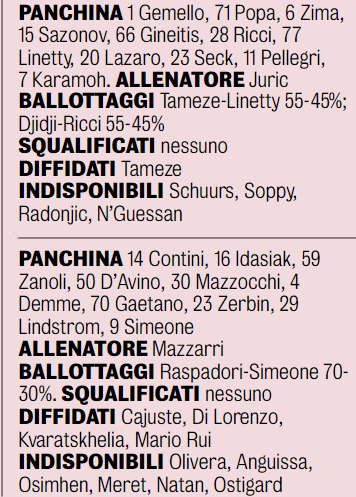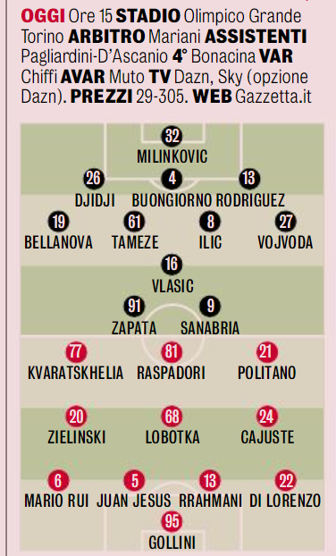 La Gazzetta mette in campo Napoli e Torino (Grafico)