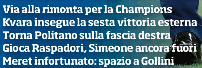 NewsCalcioRassegna Stampa “SI CAMBIA ROTTA”. La prima pagina del Cds Campania. Mazzarri: “Mi sento in debito con il Napoli” By Giuseppe Sacco il Gen 7, 2024 - 07:15:22 0 Condividi In prima pagina e nel profilo interno del cds edizione Campania Factory della Comunicazione CalcioCorriereMazzarriNapoli 0 Condividi FacebookTwitterGoogle+ReddItWhatsAppPinterestE-mail