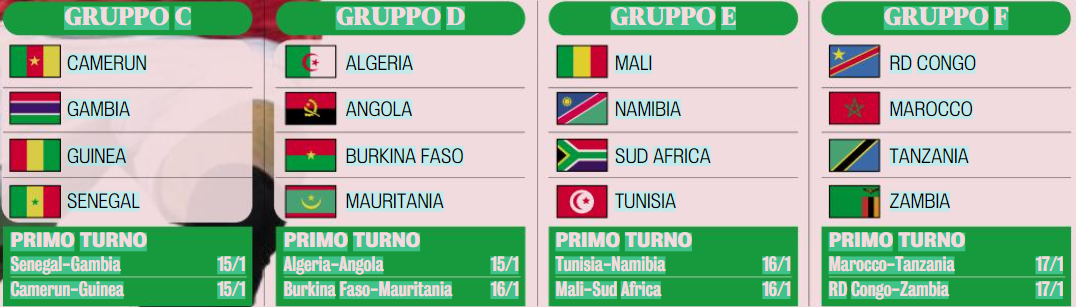 Con sei mesi di ritardo, sabato parte la Coppa d’Africa. È l’edizione numero 34 e si gioca in Costa d’Avorio, sei stadi in 5 città, e che è stata spostata, come la precedente disputata nel 2022 in Camerun, per motivi climatici. Senza un favorito Basta dare un’occhiata alle quote dei bookmaker per rendersi conto rapidamente che il torneo, a 24 squadre, non ha un favorito chiaro. In meno di un punto e mezzo di differenza sono racchiusi Marocco, Senegal, Costa d’Avorio e Algeria. Poco dietro ecco Egitto, Camerun, Nigeria e Tunisia, più staccate Ghana e Mali. Diciamo che si può essere d’accordo in linea di principio, con tutte le incognite che caratterizzano sempre la Coppa d’Africa. Fonte e grafico Gazzetta