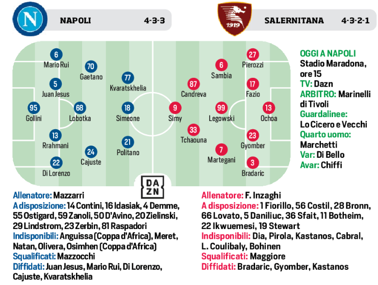 Napoli/Salernitana: la formazione la mette in campo il CdS (Grafico)