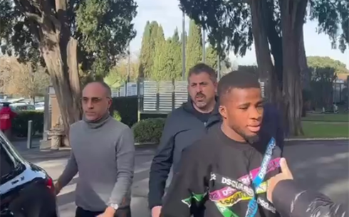 Il nuovo acquisto in pectore del Napoli: felice, contento, eccitato, sneakers rosse e felpa nera con strisce griffate di tanti colori. E sì, c’è anche l’azzurro: lo sfondo del