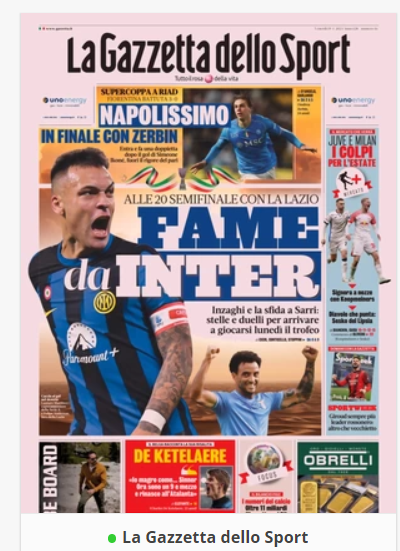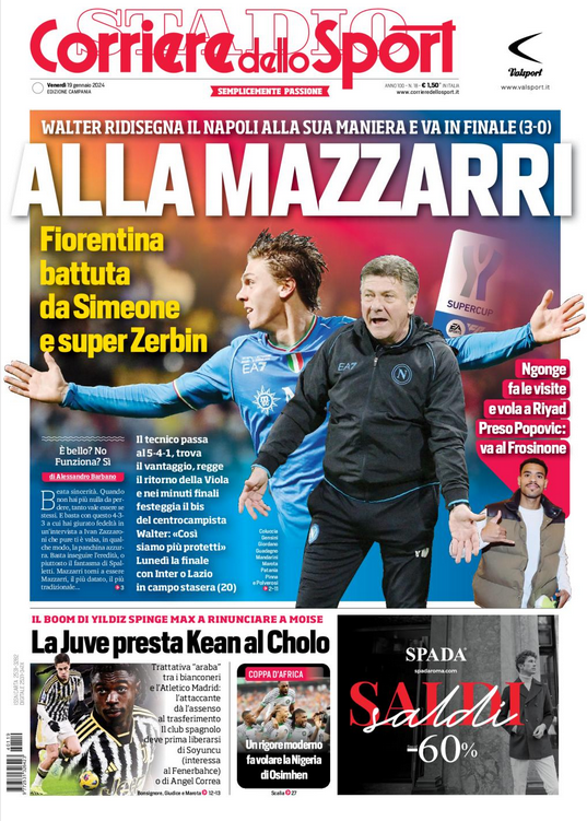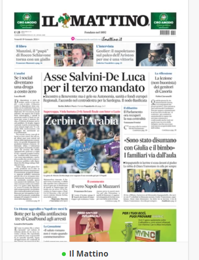 NewsCalcioIn Evidenza “RASSEGNA STAMPA”. Le prime pagine sportive del 19 gennaio By Giuseppe Sacco il Gen 19, 2024 - 07:00:03 0 Condividi In primo piano sui principali quotidiani sportivi nazionali Factory della Comunicazione CalcioNapoliRassegnaStampa 0 Condividi FacebookTwitterGoogle+ReddItWhatsAppPinterestE-mail