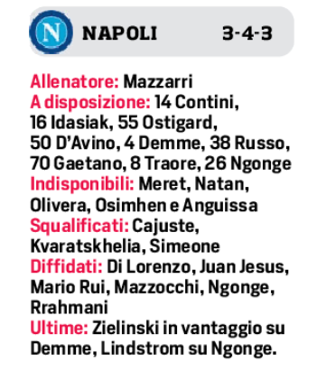 (Grafico) – Lazio/Napoli con cerotti: il Cds prova a fare le formazioni