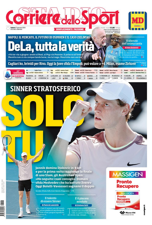 NewsCalcioIn Evidenza “RASSEGNA STAMPA”. Le prime pagine sportive del 27 gennaio By Giuseppe Sacco il Gen 27, 2024 - 07:00:24 0 Condividi In primo piano sui principali quotidiani sportivi nazionali Factory della Comunicazione CalcioNapoliRassegnaStampa 0 Condividi FacebookTwitterGoogle+ReddItWhatsAppPinterestE-mail
