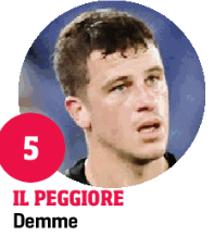 Trenta passaggi su trenta centrati. Sei possessi guadagnati. Obbligato a lottare più che a costruire, costretto a trafelati recuperi. Spigoloso e rognoso.