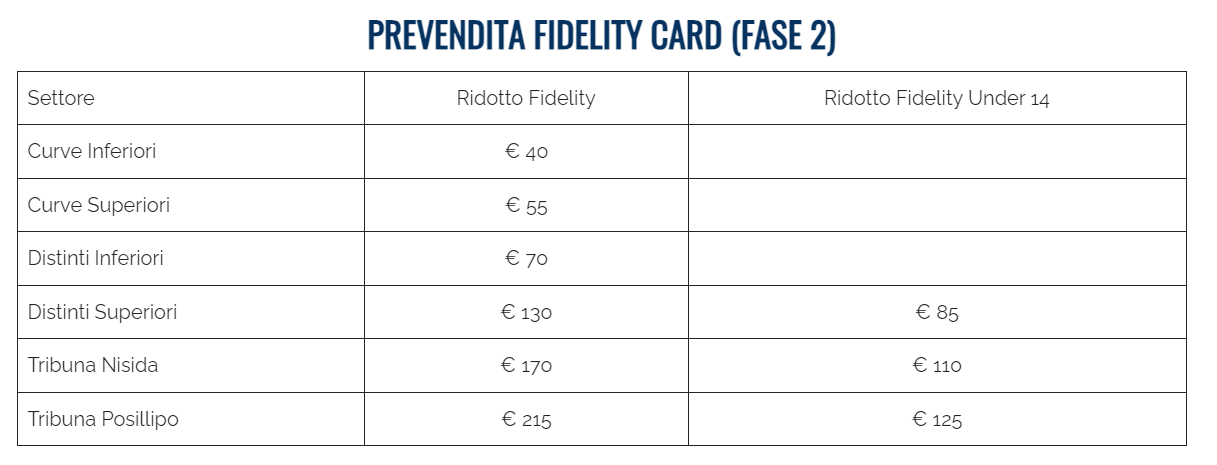 FASE 2 – PREVENDITA FIDELITY SSC NAPOLI – FAN STADIUM CARD