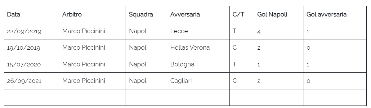 Tre vittorie ed un pareggio.