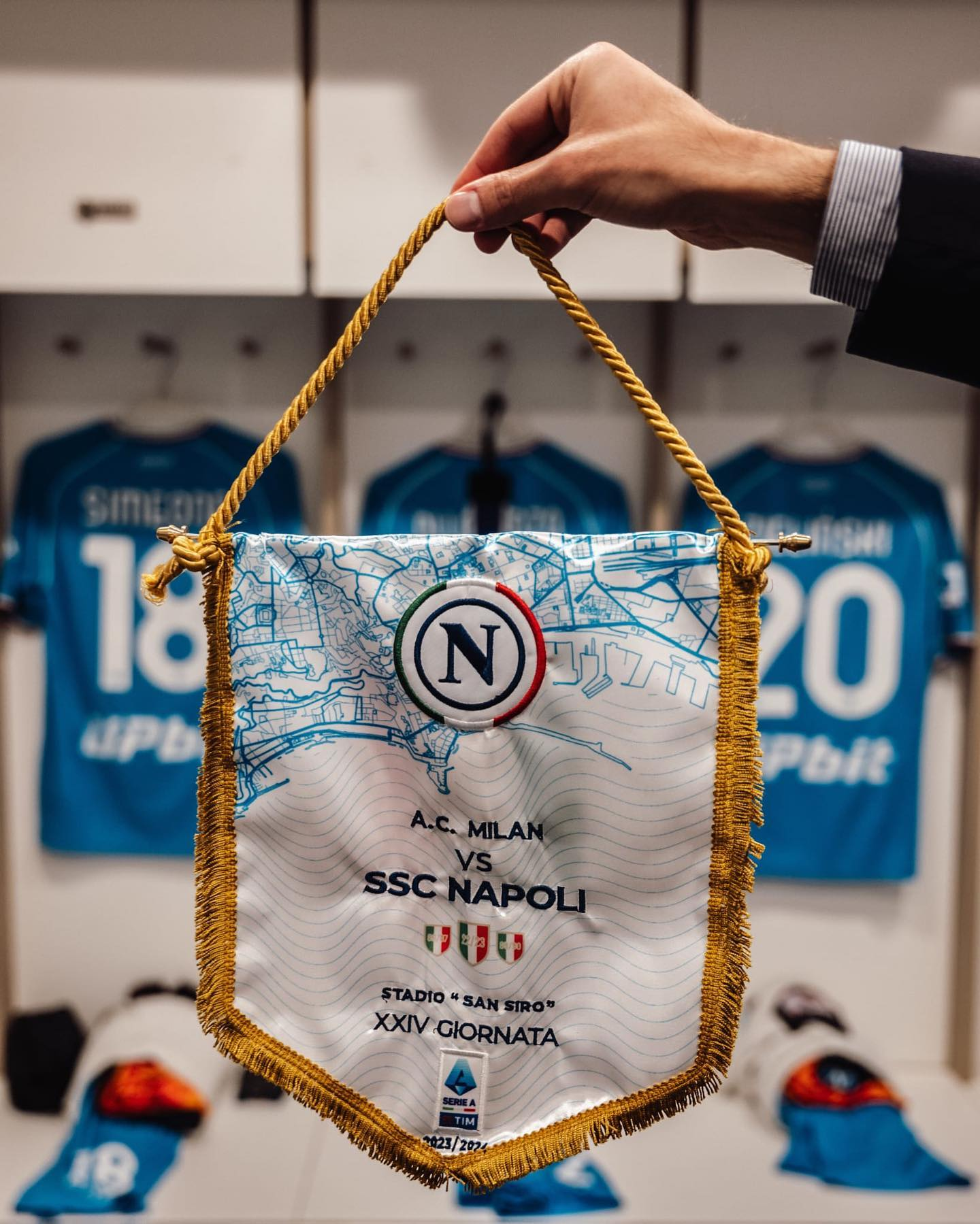 Divise: Milan in completo nero, portiere in completo bianco. Napoli in completo azzurro ed inserti bianchi con il tricolore sul petto, portiere in completo rosso