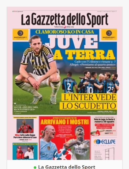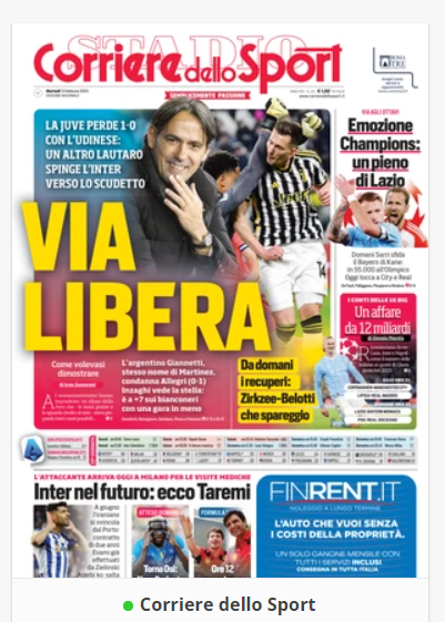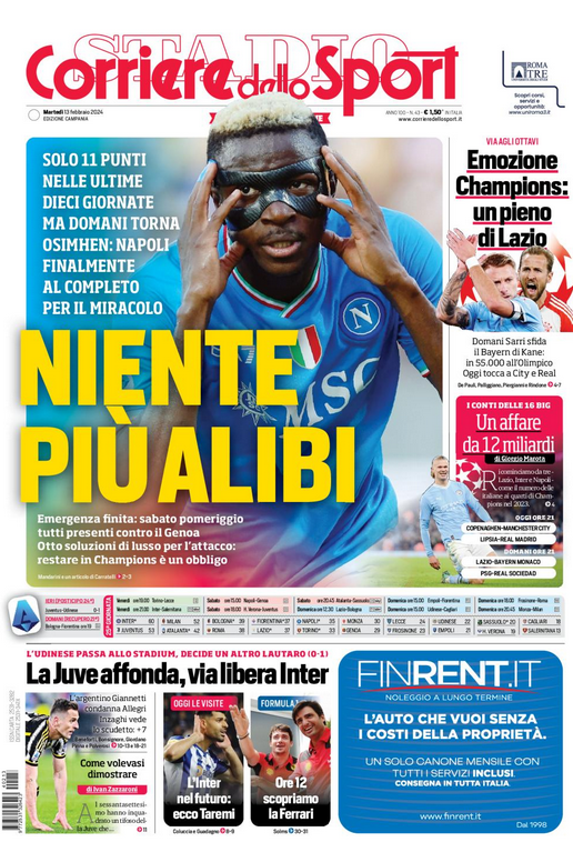 NewsCalcioIn Evidenza “RASSEGNA STAMPA” – Le prime pagine sportive del 13 febbraio By Giuseppe Sacco il Feb 13, 2024 - 07:00:00 0 Condividi In primo piano sui principali quotidiani sportivi nazionali Factory della Comunicazione CalciioNapoliRassegnaStampa 0 Condividi FacebookTwitterGoogle+ReddItWhatsAppPinterestE-mail