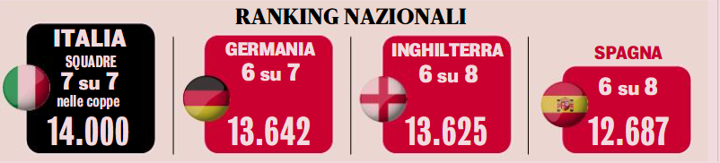 Se l’Italia riesce a restare nei primi due posti, la Serie A promuoverebbe alla prossima Champions anche la quinta classificata, allargando l’orizzonte e pure l’interesse per l’ultima parte di campionato. Inter, Juve e Milan sono volate via, l’Atalanta quarta si è staccata, quinto attualmente è il Bologna ma la lotta finirebbe per coinvolgere legittimamente almeno altre cinque squadre: la Roma, la Fiorentina e la stessa Lazio, il Napoli e il Torino, che è ad appena sei punti dal Bologna. Tutte, a parte i giallorossi di De Rossi, devono anche recuperare una partita. E tutte ancora teoricamente in ballo anche per la quarta posizione. Ma la quinta è più vicina. Si tratta di prestigio, certo, ma pure di moneta sonante: il semplice ingresso nella Champions 2024-25 porta nelle casse 20 milioni sicuri, da incrementare sensibilmente poi con i risultati e gli incassi da stadio. Parte di una torta da quasi due miliardi e mezzo di euro di montepremi. Tutte le italiane nelle coppe europee concorrono a incrementare il ranking Uefa, la Lazio è la prima interpellata. E con i tedeschi è uno scontro diretto.
