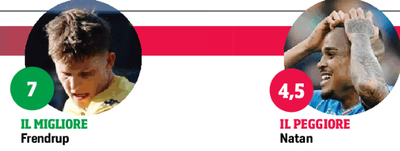 La versione più spenta, anche mentalmente: sta su una corsia che non fa male al Genoa e che avverte le folate di Martin. L’assist è un attimo di lucidità che rimuove lo sconforto.