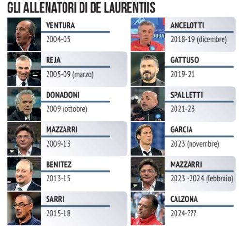 Era dal 97/98 che il Napoli non cambiava tre allenatori. Ecco la lista dell’era ADL