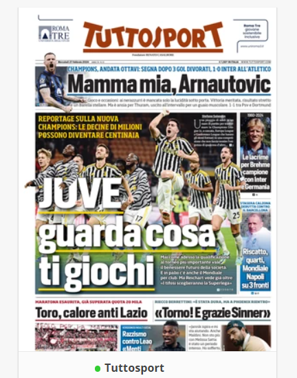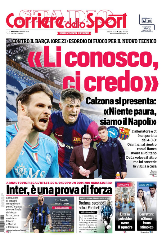 NewsCalcioRassegna Stampa RASSEGNA STAMPA – Le prime pagine sportive nazionali del 21 febbraio By Giuseppe Sacco il Feb 21, 2024 - 07:00:18 0 Condividi In primo piano sui principali quotidiani sportivi nazionali Factory della Comunicazione CalcioNapoliRassegnaStampa 0 Condividi FacebookTwitterGoogle+ReddItWhatsAppPinterestE-mail