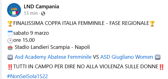 NewsCalcioCalcio Femminile FINALISSIMA COPPA ITALIA FEMMINILE – FASE REGIONALE. I dettagli By Giuseppe Sacco il Feb 25, 2024 - 10:15:00 0 Condividi Si legge sul profilo social della Lega Nazionale Dilettanti- Campania Factory della Comunicazione CalcioFemminielfinalissimaragionale 0 Condividi FacebookTwitterGoogle+ReddItWhatsAppPinterestE-mail