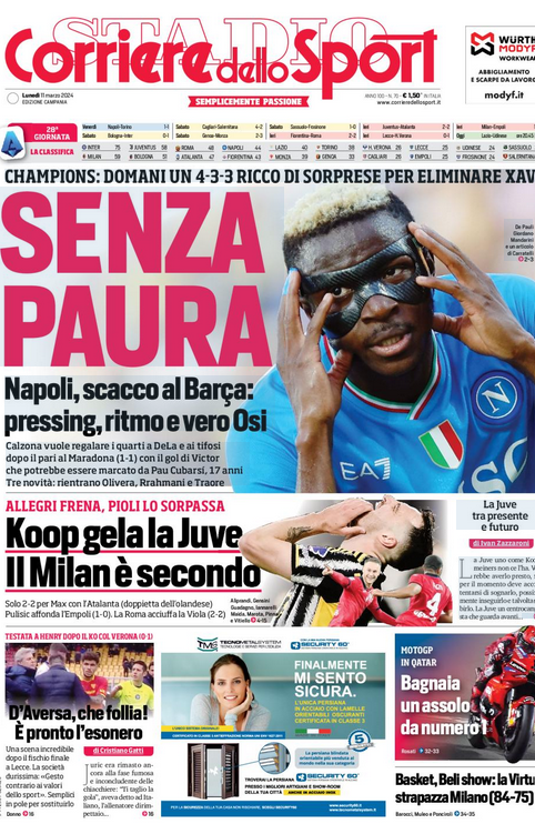 Noi siamo il Napoli: ha detto Calzona dopo il pareggio con il Torino, masticando orgoglio e sputando fiducia verso la Champions. E poi ha aggiunto che con il Barcellona i suoi avrebbero giocato onorando il nome azzurro: cioè, senza paura. Da scugnizzi, sfrontati. Mica parole: Francesco, l’allenatore fiero, sa essere anche Ciccio quando arriva in campo. Teorico del gioco offensivo, del calcio verticale e del furore intelligente: ecco perché sta preparando la partita insistendo molto sull’aggressività, pressing alto e riaggressioni per trasformare le transizioni in ripartenze; e poi ampiezza, verticalizzazioni, possesso veloce. Più di quanto non sia accaduto finora. Fonte: CdS