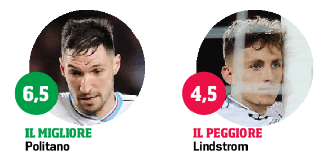 Olivera (19’ st)5 – Debutto contro Lamine: fallo, giallo, tilt. Incisivo in attacco: cross perfetto per il pari sprecato da Lindstrom e traversa nel finale.