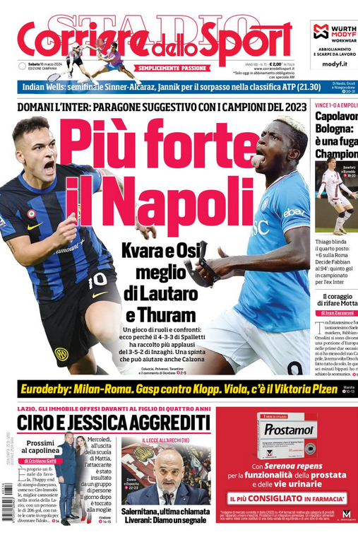 CdS Campania – “PIU’ FORTE IL NAPOLI”. Ma Lautaro si prepara a salire da re sul trono dell’attuale campionato di A