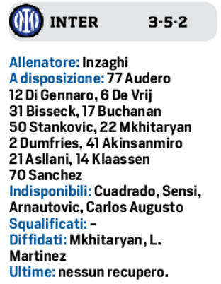 Entrambe le squadre reduci da una dolorosa e per l’Inter alquanto inaspettata eliminazione Champions, si affrontano questa sera a San Siro. I Campioni d’Italia in carica del Napoli affrontano a Milano i prossimi (inutile nascondersi) scudettati. Il CdS ha provato ad anticipare le scelte di Simone Inzaghi e Francesco Calzona: