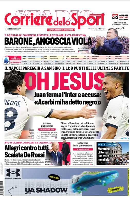 Rassegna stampa del 18 marzo – “PRIME PAGINE SPORTIVE”