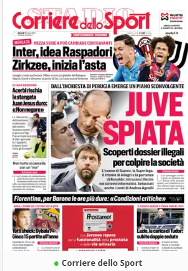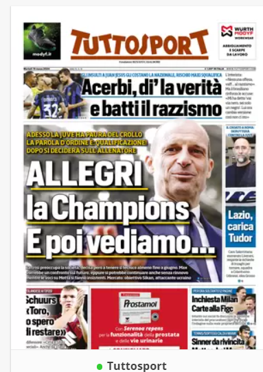 In primo piano sui principali quotidiani sportivi nazionali
