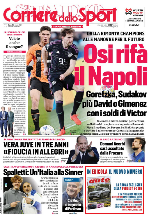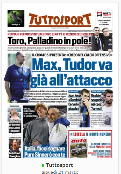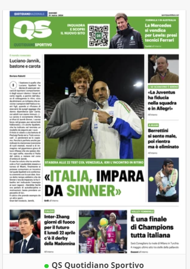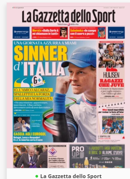 NewsCalcioIn Evidenza “RASSEGNA STAMPA”. Le prime pagine sportive nazionali del 21 marzo By Giuseppe Sacco il Mar 21, 2024 - 07:00:35 0 Condividi In primo piano sui principali quotidiani sportivi nazionali Factory della Comunicazione CalcioNapoliRassegnaStampa 0 Condividi FacebookTwitterGoogle+ReddItWhatsAppPinterestE-mail