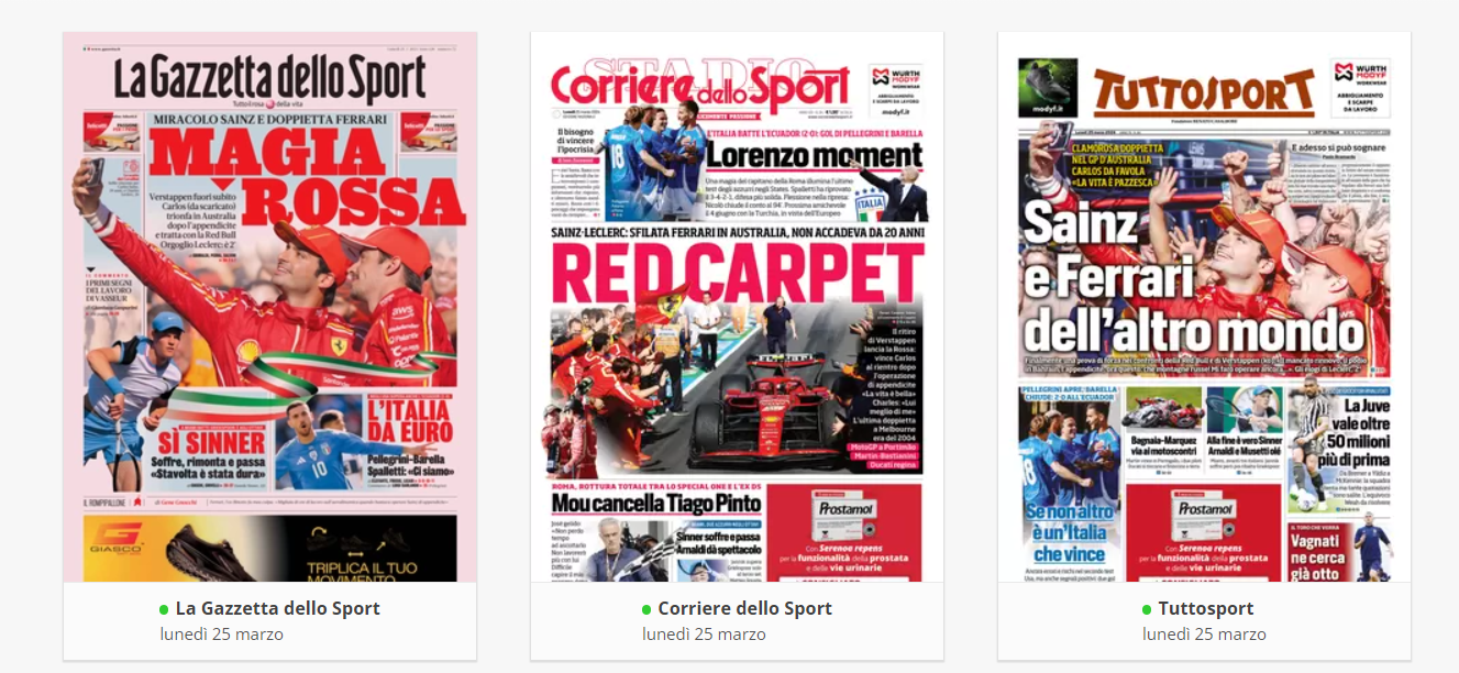 NewsCalcioIn Evidenza “RASSEGNA STAMPA” – Le prime pagine sportive del 25 marzo By Giuseppe Sacco il Mar 25, 2024 - 07:00:46 0 Condividi In promo piano sui principali quotidiani sportivi nazionali Factory della Comunicazione CalcioNapoliRassegnaStampa 0 Condividi FacebookTwitterGoogle+ReddItWhatsAppPinterestE-mail