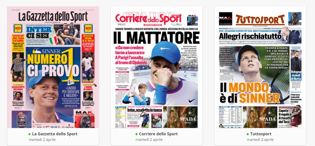 NewsCalcioIn Evidenza “RASSEGNA STAMPA SPORTIVE”. Le prime pagine del 2 aprile By Giuseppe Sacco il Apr 2, 2024 - 07:00:58 0 Condividi In primo piano sui principali quotidiani sportivi nazionali Factory della Comunicazione CalcioNapoliRassegnaStampa 0 Condividi FacebookTwitterGoogle+ReddItWhatsAppPinterestE-mail