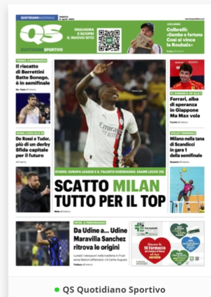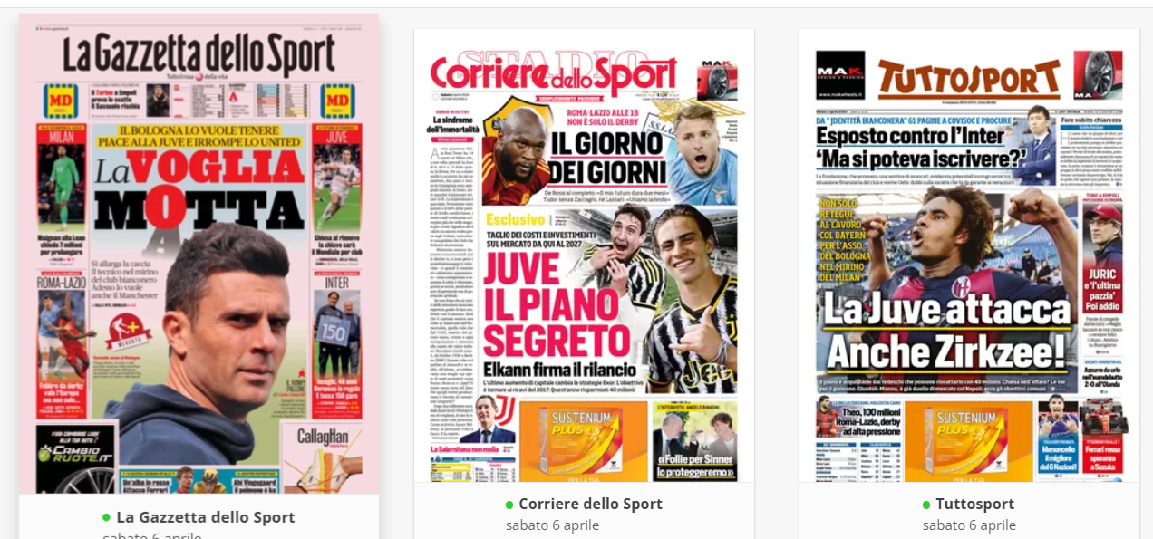 NewsCalcioIn Evidenza “RASSEGNA STAMPA” – Le prime pagine sportive del 6 aprile By Giuseppe Sacco il Apr 6, 2024 - 07:00:42 0 Condividi In primo piano sui principali quotidiani sportivi nazionali Factory della Comunicazione CalcioNapoliRassegnaStampa 0 Condividi FacebookTwitterGoogle+ReddItWhatsAppPinterestE-mail