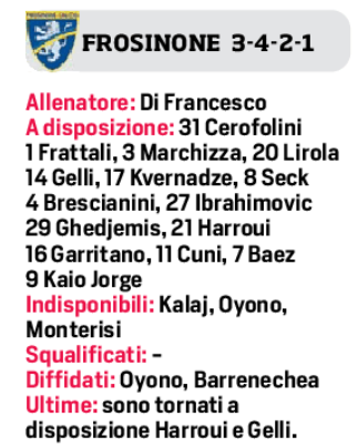 (Grafico) Napoli verso Frosinone, le formazioni secondo il Corriere dello Sport