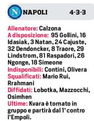 (Grafico) Empoli/Napoli: le possibili formazioni le dà il CdS