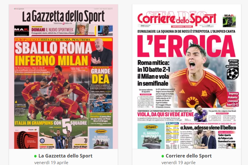 NewsCalcioIn Evidenza “RASSEGNA STAMPA” – Le prime pagine sportive del 19 aprile By Giuseppe Sacco il Apr 19, 2024 - 07:00:36 0 Condividi In primo piano sui principali quotidiani sportivi nazionali Factory della Comunicazione CalcioNapoliRassegnaStampa 0 Condividi FacebookTwitterGoogle+ReddItWhatsAppPinterestE-mail