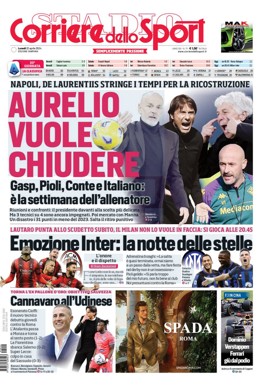 Gli allenatori di Milan e Dea in cima