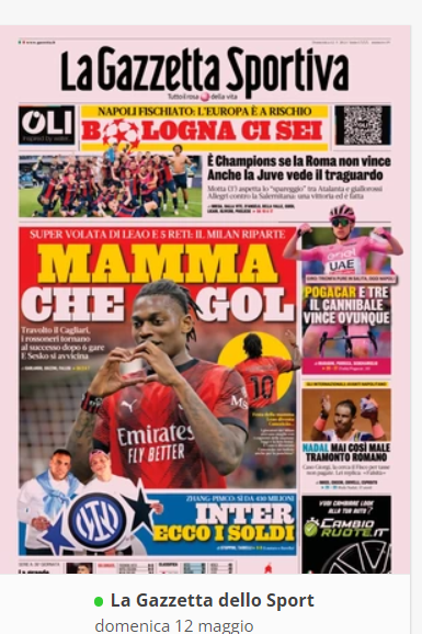 NewsCalcioIn Evidenza “RASSEGNA STAMPA” – Prime pagine sportive del 12 maggio By Giuseppe Sacco il Mag 12, 2024 - 07:00:12 0 Condividi In primo piano sui principali quotidiani sportivi nazionali Factory della Comunicazione CalcioNapoliRassegnaStampa 0 Condividi FacebookTwitterGoogle+ReddItWhatsAppPinterestE-mail