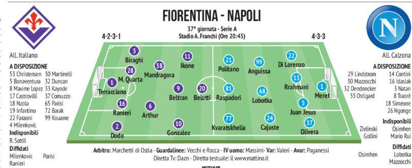 “IL MATTINO” mette in campo Fiorentina e Napoli. Raspadori per andare in Europa