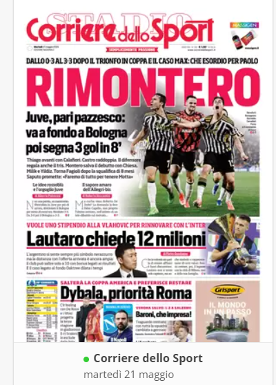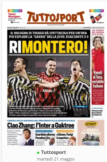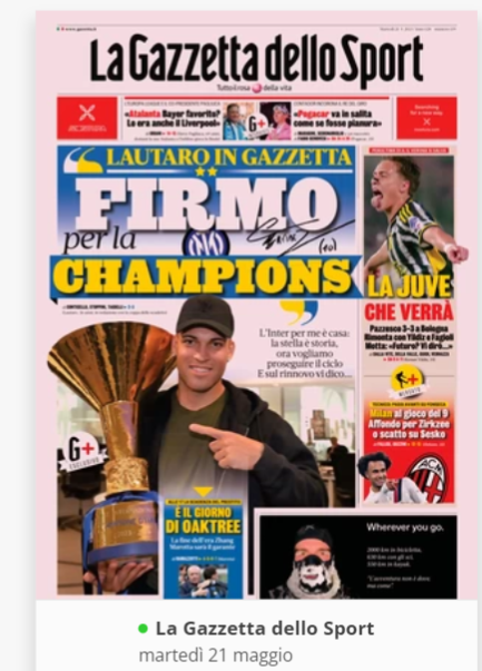 NewsCalcioIn Evidenza “LA RASSEGNA STAMPA” – Prime pagine sportive del 21 maggio By Giuseppe Sacco il Mag 21, 2024 - 07:00:24 0 Condividi In primo piano sui principali quotidiani sportivi nazionali Factory della Comunicazione clcioNapoliRassegnaStampa 0 Condividi FacebookTwitterGoogle+ReddItWhatsAppPinterestE-mail