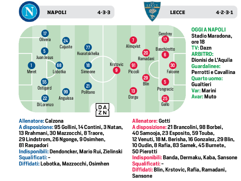 (Grafico) Napoli/Lecce: le possibili formazioni. Azzurri contro la città di Conte!