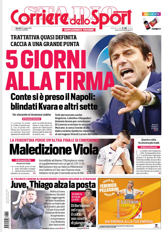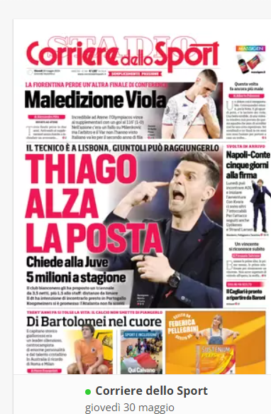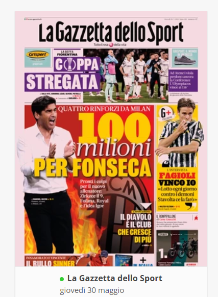 NewsCalcioIn Evidenza “RASSEGNA STAMPA” – Le prime pagine sportive del 30 maggio By Giuseppe Sacco il Mag 30, 2024 - 08:00:42 0 Condividi In primo piano sui principali quotidiani sportivi nazionali Factory della Comunicazione CalcioNapoliRassegnaStampa 0 Condividi FacebookTwitterGoogle+ReddItWhatsAppPinterestE-mail