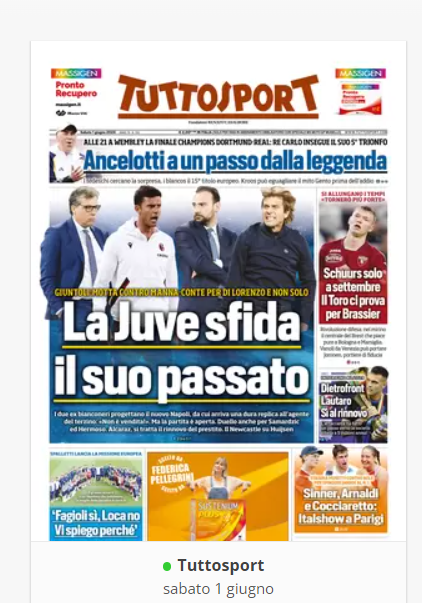 NewsCalcioIn Evidenza “LA RASSEGNA STAMPA” – Prime pagine sportive del 1° giugno By Giuseppe Sacco il Giu 1, 2024 - 07:00:49 0 Condividi In primo piano sui principali quotidiani sportivi nazionali Factory della Comunicazione CalcioNapoliRassegnaStampa 0 Condividi FacebookTwitterGoogle+ReddItWhatsAppPinterestE-mail