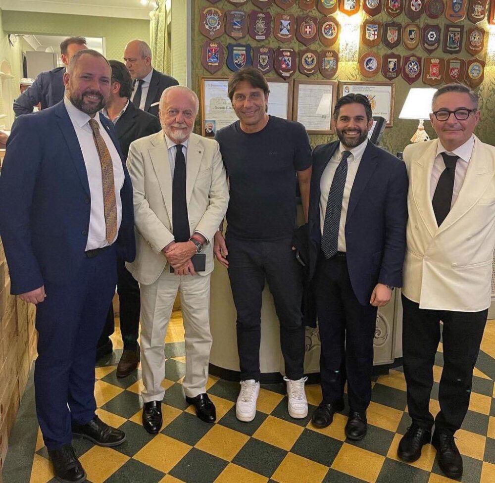 Laurentiis, l’ad Chiavelli e il ds Manna alla Filmauro, ha cenato con loro e oggi sarà ufficiale la sua investitura fino al 2027: è lui, il nuovo allenatore del Napoli. È lui, la luce in fondo al tunnel di una stagione che ha sbriciolato lo scudetto, creato strappi che dovranno essere ricuciti con cura e azzerato le certezze di un gruppo di valorosi talenti che il signor Antonio dovrà innaffiare con la maestria e l’adrenalina da leader vero, ricostruendo l’anima della squadra. La sua giornata romana, dolce vita nuova, comincia intorno alle 17.30 a Fiumicino: aereo da Torino e atterraggio nella Capitale. E finisce a tarda sera da Rinaldi al Quirinale, ristorante cool del centro dove il presidente è di casa, dopo una riunione a programmare presente, mercato e futuro: cena e partita dell’Italia tutti insieme, alé. In mezzo, però, c’è una storia di indizi, depistaggi, inseguimenti e dribbling da riempirci una fiction. Ma è solo la prima scena. E il meglio, di certo, deve ancora venire.  Fonte: CdS