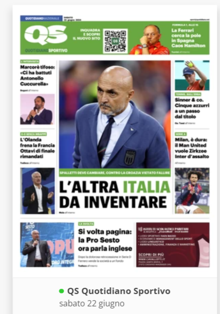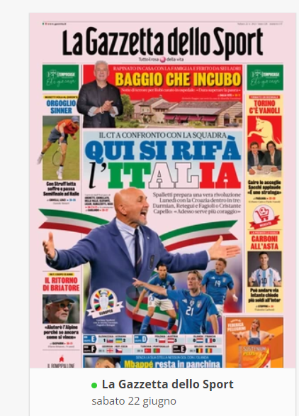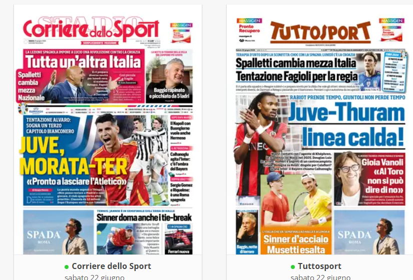 NewsCalcioIn Evidenza “RASSEGNA STAMPA” – Prime pagine sportive nazionali del 22 giugno By Giuseppe Sacco il Giu 22, 2024 - 07:00:06 0 Condividi In primo piano sui principali quotidiani sportivi nazionali Factory della Comunicazione CalcioNapolliRassegnaStampa 0 Condividi FacebookTwitterGoogle+ReddItWhatsAppPinterestE-mail